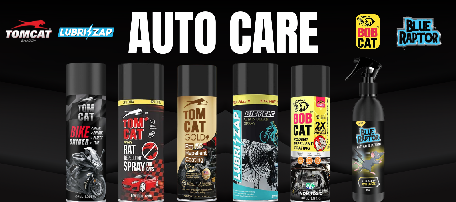 Spraying inside the car and the boot is not recommended because of the long-lasting effect of the intense Tom Cat taste. Use on the engine parts, undersides, insulations, wires, rubber parts in the engine and possible entry points of rodents.