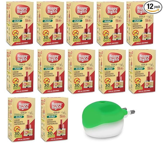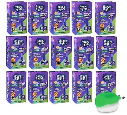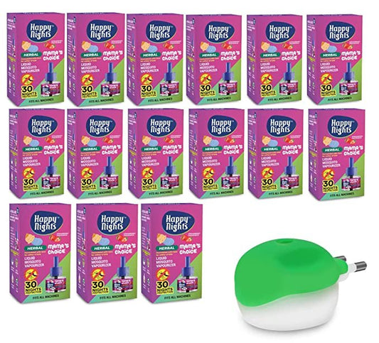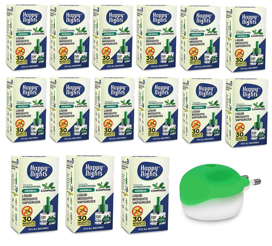 Happy Nights Combo Pack Herbal Lemon Eucalyptus + Camphor + Herbal Liquid Mosquito Repellent Vaporizer - 1 no each + 1 machines